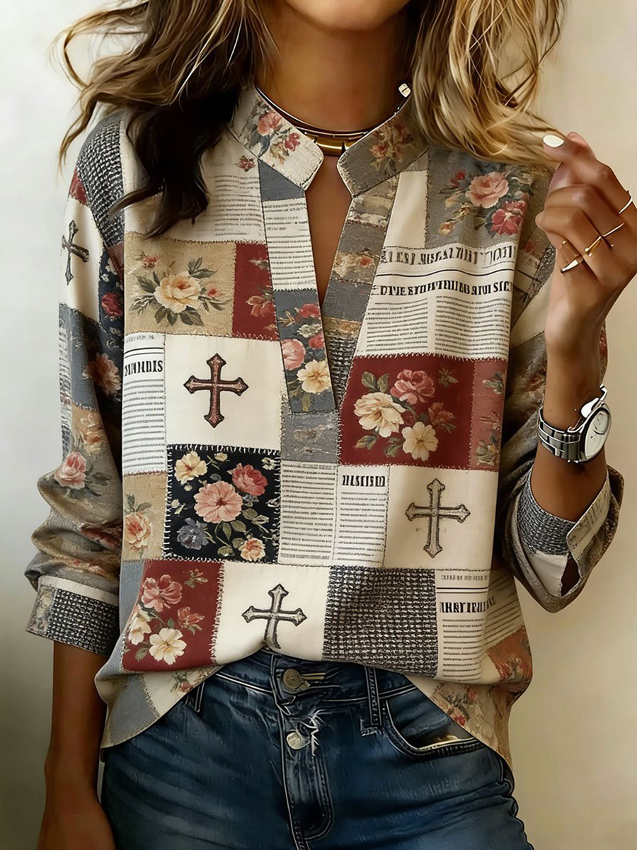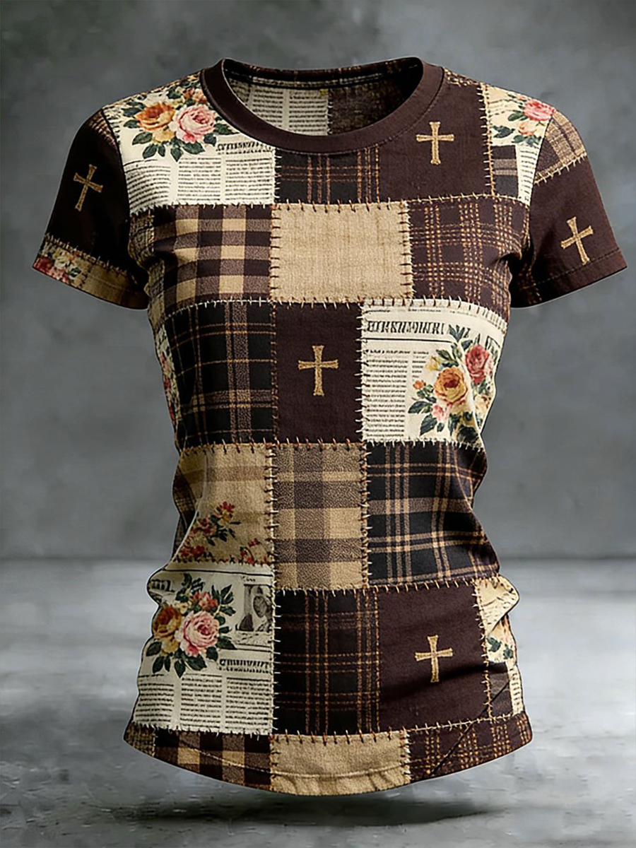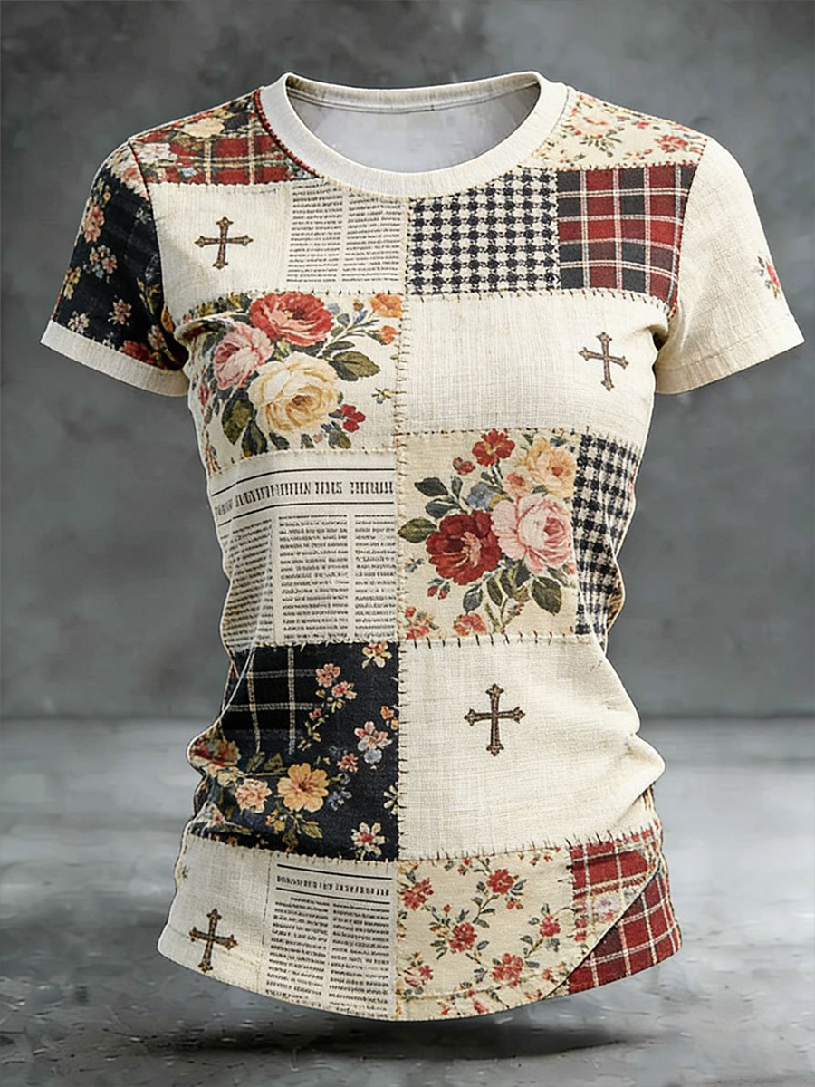 Women's Cross Floral Print Casual T-shirt