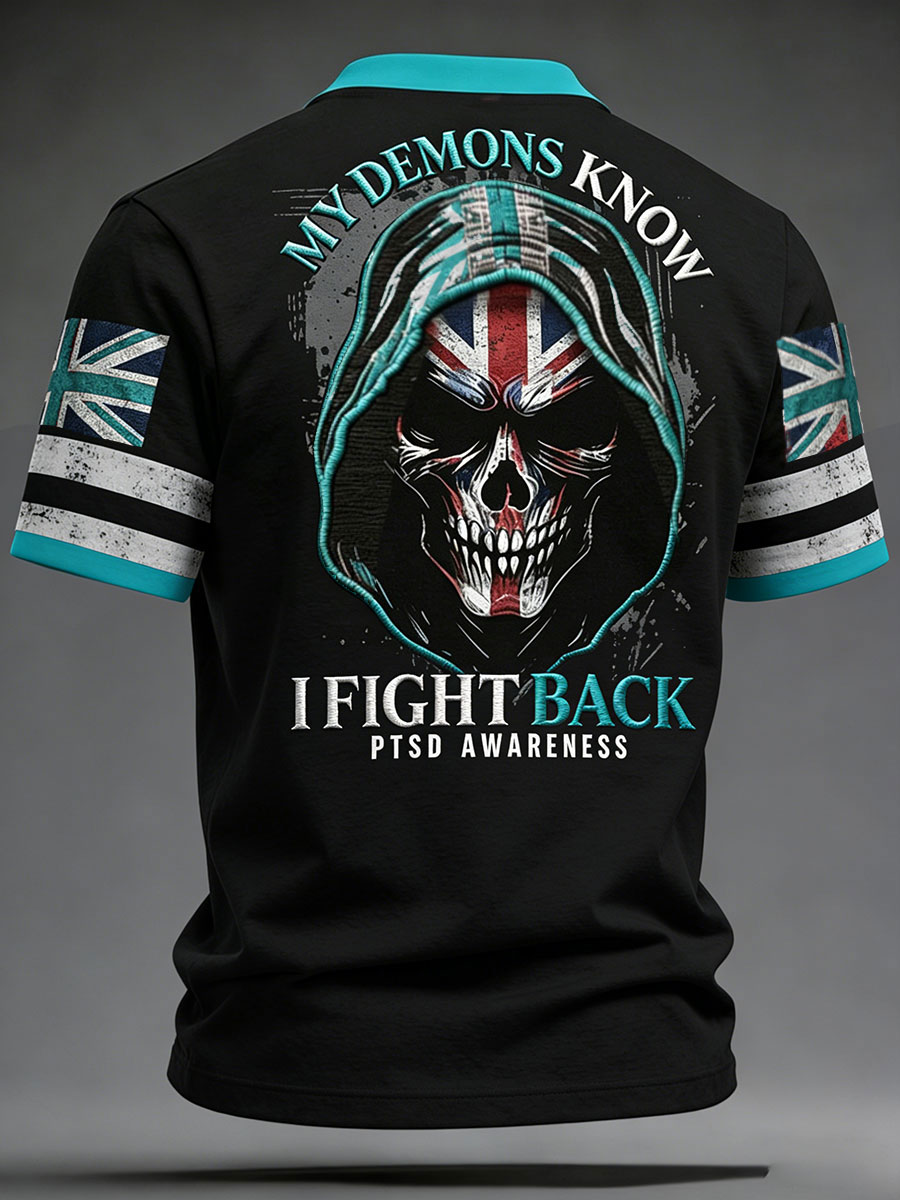 Men's Retro UK PTSD Awareness Printed Casual Tops