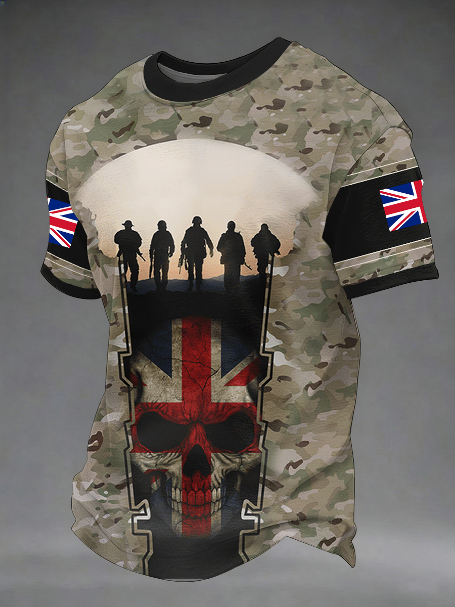 Men's British Veteran Silhouette Camouflage Print Casual Tee