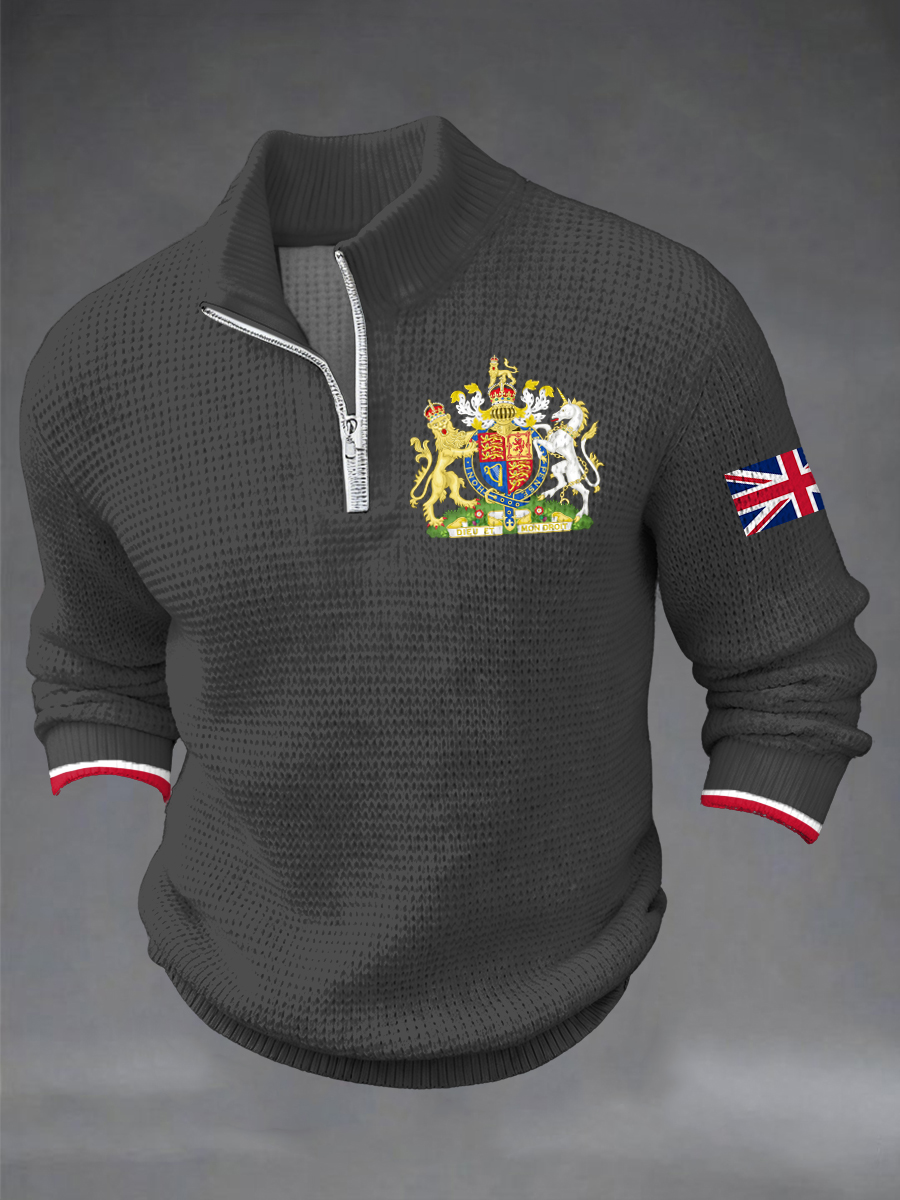 Men's UK Printed Casual Zipper Pullover