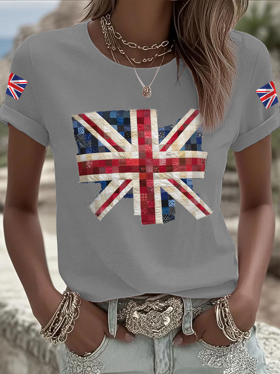 Women's british flag print Iron On Short Sleeve T-Shirt